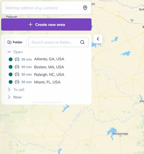 To do this, go to the map in the area-management panel and click on the options button (three dots) on the right of the area you want to copy, then choose the “Export (KML)” option: