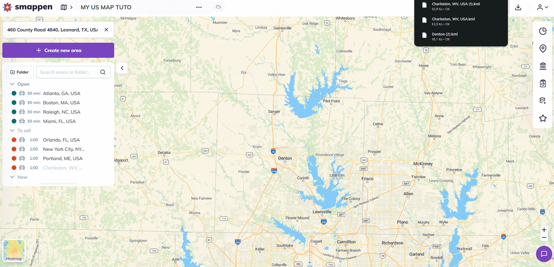 Smappen makes it easy to import areas in KML format.
