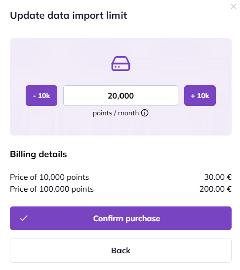 - In the “My Data” section, click “Manage your data”+” to add 10k points, or “-” to remove them.