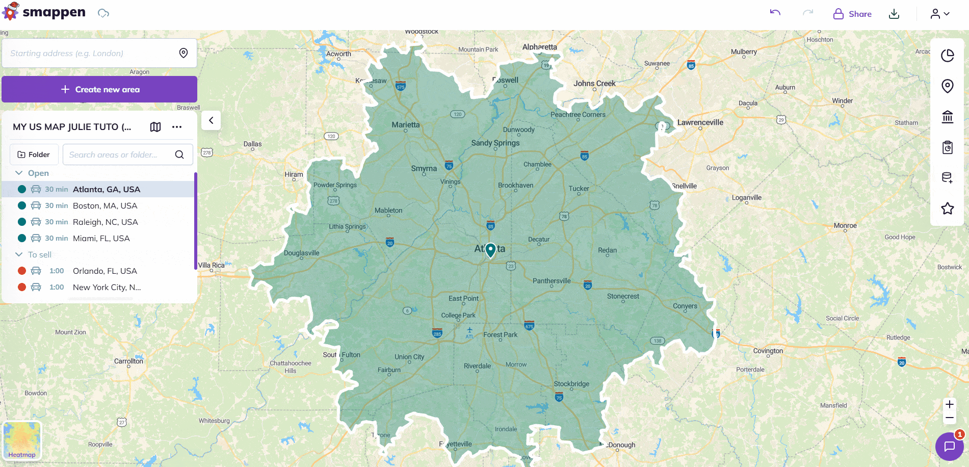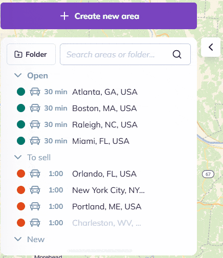If you have created an area in one folder but later want to organize it in a different folder, you can easily move it from the area-management panel.