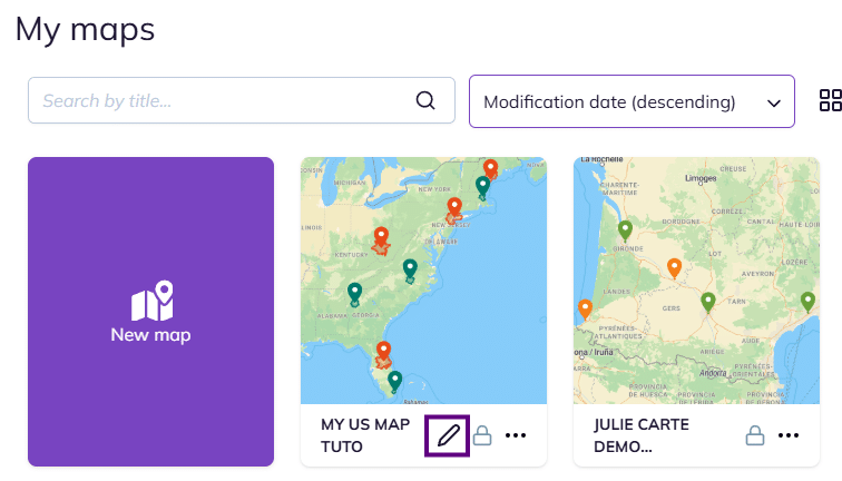 Then, hover over the title of the map you wish to rename. A pencil icon will appear, simply click it to edit the title, press Enter, and you’re all set!