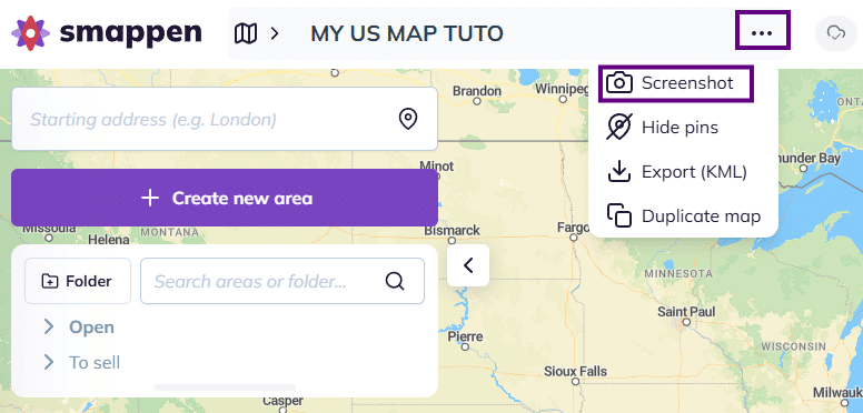 To save your map as a high-quality image, access the three dots next to the map title at the top of your screen, then select “Screenshot“: